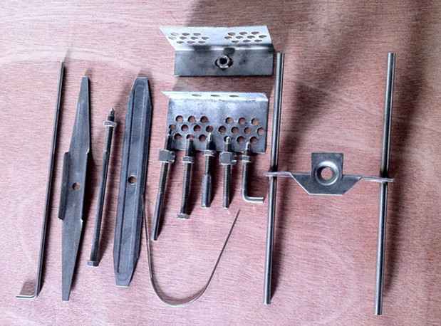 恒瑞锚固件是将陶瓷纤维、轻质隔热砖、不定型耐火材料等轻质耐材与窑炉金属壁板相连接、固定的结构件。根据工业窑炉结构、炉膛温度、环境气氛应选用不同结构和不同材质的锚固件。根据锚固件在不同的设备上所使用的环境及状态,可将其分为括模块专用角铁式锚固件、菱形锚固件、蝶形锚固件、空吊式锚固件、拐角式锚固件;折叠块用人字架锚固件;快速卡片、旋转卡片、穿筋、螺杆螺母、穿筋、U型穿钉、V型钉等。